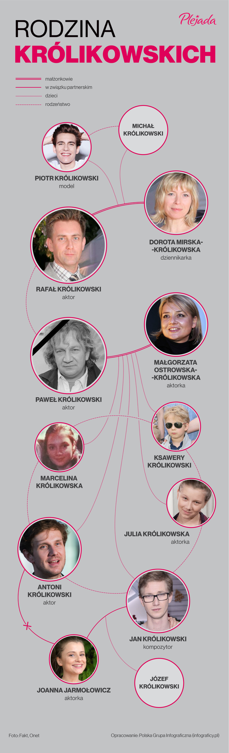 Młodszy brat rafał także jest aktorem w wieku 21 lat na egzaminach do wrocławskiej szkoły aktorskiej poznał swoją przyszłą żonę aktorkę małgorzatę ostrowską powszechnie znaną z roli grażyny lubicz w telenoweli tvp1 klan. Już w dzieciństwie starszy królikowski dbał o młodszego. Małgorzata ostrowska królikowska paweł królikowski antek królikowski rafał królikowski od lat są bohaterami pierwszych stron gazet. Praprababka teresa królikowska z domu breier 1840 1886 w połowie xix wieku przybyła z czech do zduńskiej woli.