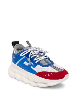 Versace Blue Red Chain Reaction Sneakers High End Outlet