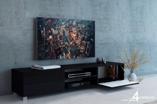 Szafka Rtv 180 Cm Czarny Polysk Meble Minio